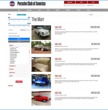 The Porsche Club of America offers a free classified ad section to